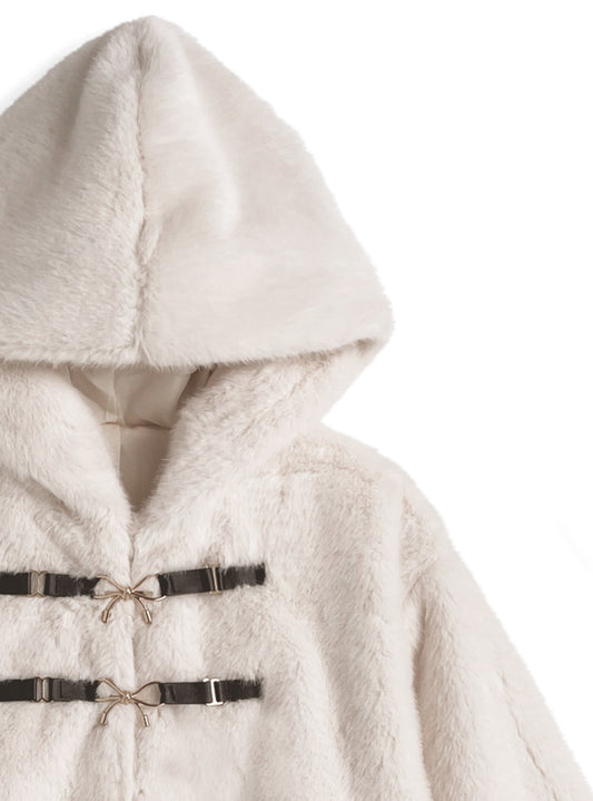 日本直送 [預購] 蝴蝶౨ৎ鈕扣·帶帽·保暖毛毛外套 ◍ 2色入