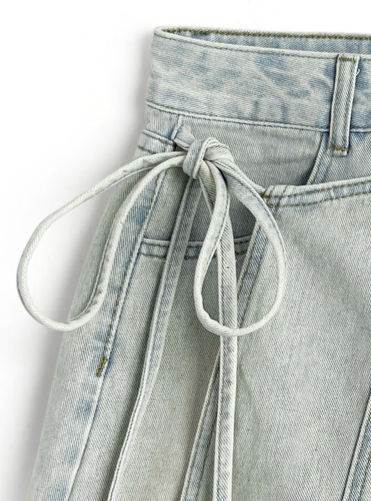 日本直送 [預購] 側蝴蝶結౨ৎ洗水色 牛仔裙褲 (Blue ブルー)
