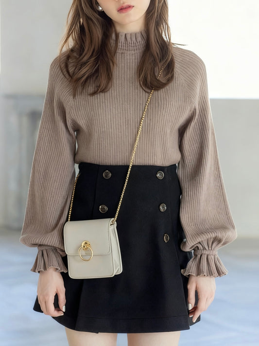 日本直送 [預購] 方領Ruffle下擺針織上衣 ◍ 3色入