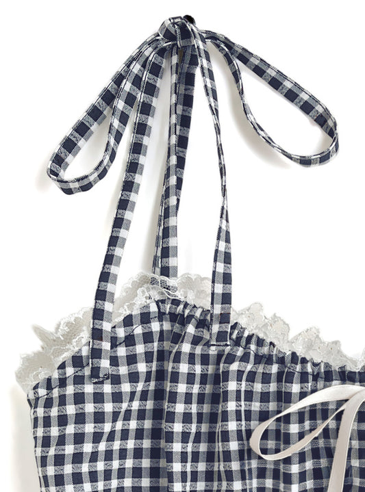 日本直送 [預購] 蝴蝶領口౨ৎ 格仔lace邊背心仔 ◍ 4色入